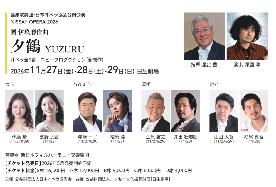 藤原歌劇団・日本オペラ協会合同公演 NISSAY OPERA 2026「夕鶴」のキャストを発表いたします。